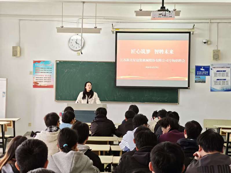 4月23日下午,江苏新美星包装机械股份有限公司专场招聘宣讲会顺利开展,365英国上市公司毕业班辅导员及部分应届毕业生参加本次活动。